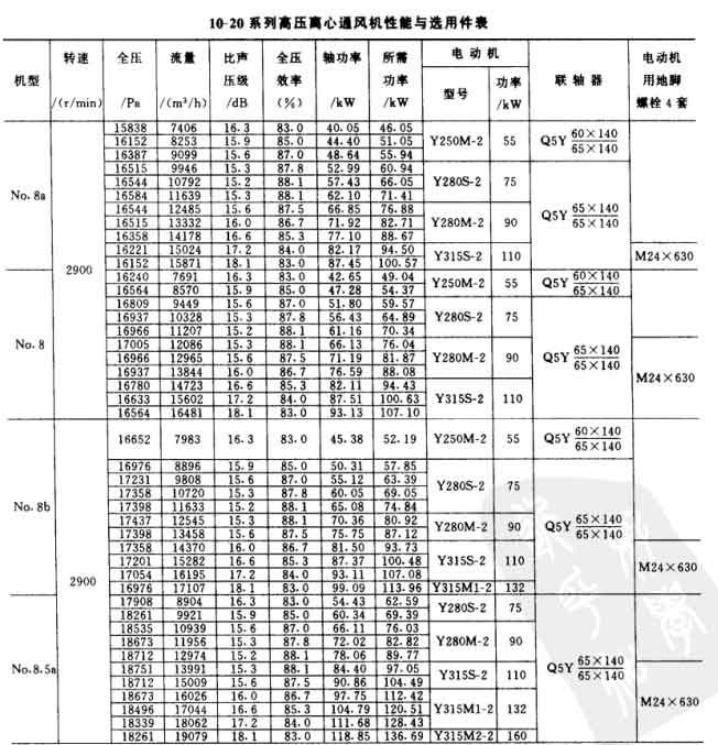 1.風(fēng)機制成單吸人,機號有No.8a、8、8b、8.5a、8.5、8.5b、9a、9、9b,共九種。