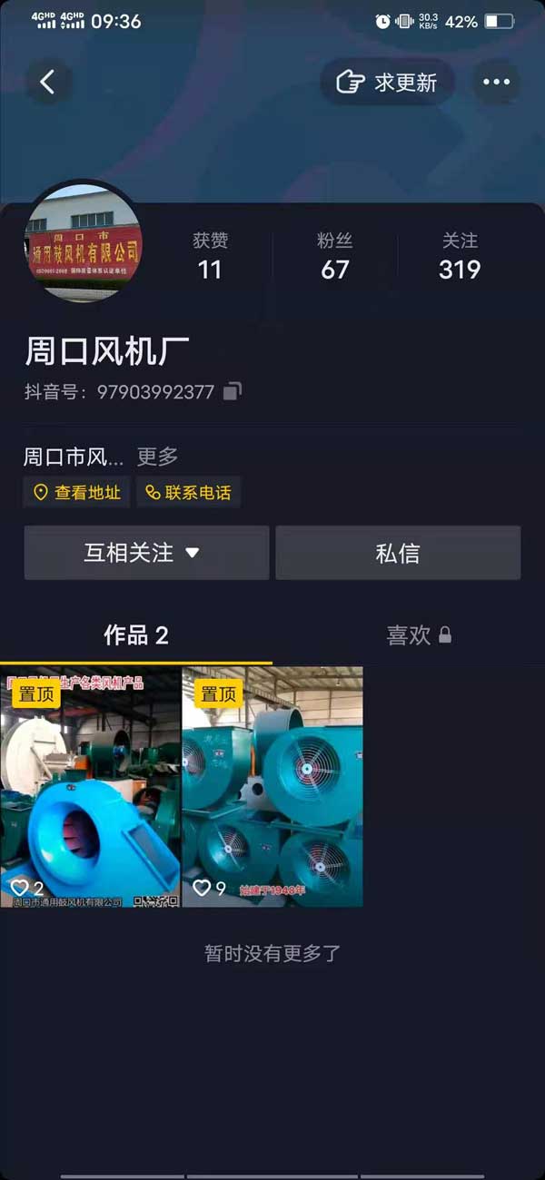 抖音名稱:周口風(fēng)機(jī)廠,抖音號(hào)為:97903992377。