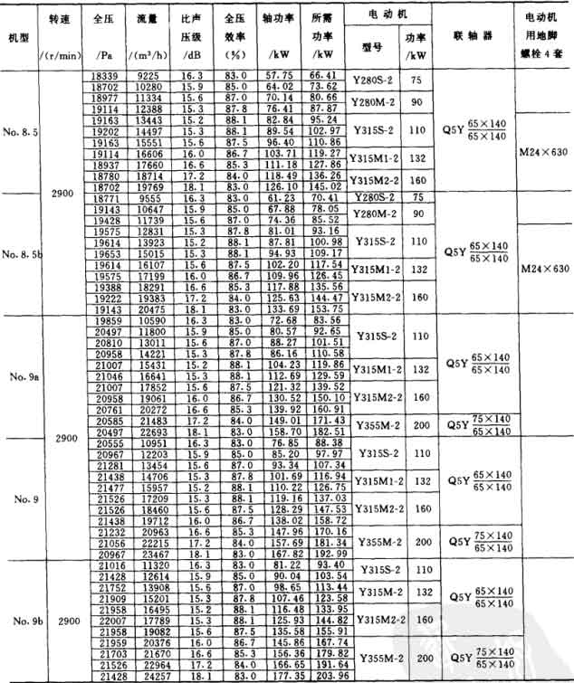 1.風(fēng)機制成單吸人,機號有No.8a、8、8b、8.5a、8.5、8.5b、9a、9、9b,共九種。